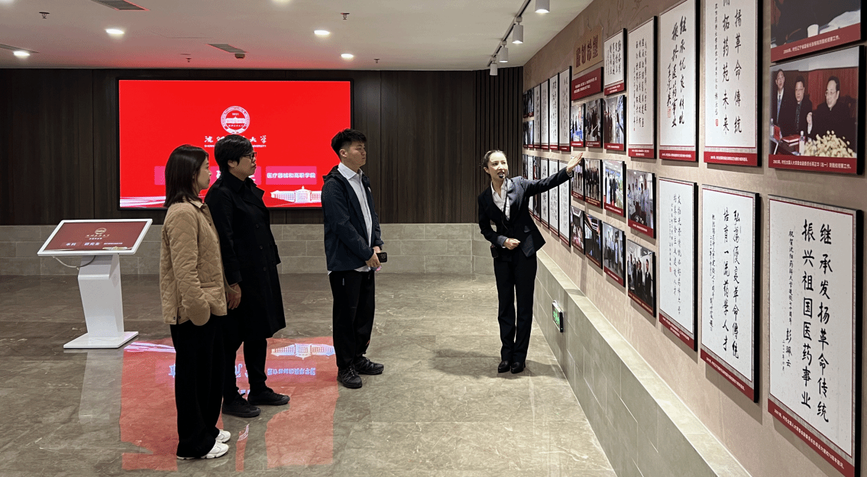 报告会前,药学院党委书记李哲、副院长毛玉玲陪同林世翼博士参观了校史馆,共同重温母校办学历史与发展成就。