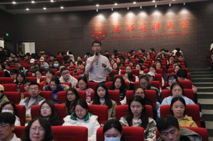 药学院院长张宇、党委书记李哲、副院长熊志立、副院长赵勤富、副院长宋艳志、副院长毛玉玲与党委副书记史琳琳出席此次学术活动,药学院青年教师与学生辅导员以及来自全校各院系本科生与研究生共同参与,现场学术氛围浓厚。