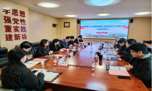 11月18日,华东理工大学药学院党委书记倪炜,副院长邵旭升、马磊、张敏,药物科学系教工党支部书记黄瑾,药学院辅导员黄守城一行莅临我院调研交流。药学院院长张宇,党委书记李哲,副院长熊志立、赵勤富、宋艳志、毛玉玲,副书记史琳琳,团委书记王纯爽参加调研交流,座谈会由院党委书记李哲主持。