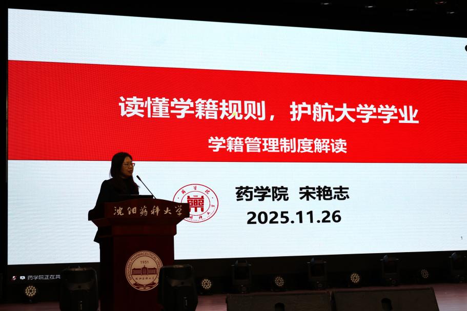 接下来,药学院副院长宋艳志做本科生学籍教育,她分别就学籍注册、选课、考试与成绩记载、留级、休学与退学、保留学籍、留级、毕业学位、转专业和免试推荐研究生条件等方面进行详细介绍,此次讲解旨在助力新生明确学业导向、重视成绩管理,全面掌握学籍管理相关规定,引导同学们严守校规校纪、科学规划大学学业,在规范有序的成长环境中扎实前行,收获充实而精彩的大学生活。