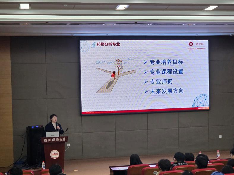 最后,各专业负责人在各个会场分别面向药学、药物制剂、药物分析三个专业的学生进行专业介绍。药学专业负责人李清做《走进药苑,解码生命,遇见自己,开创未来》药学专业介绍,药物制剂专业负责人毛世瑞做《欢迎92期药物制剂专业的新沈药人》药物制剂专业介绍,药物分析专业负责人赵云丽做《鉴药明理,筑梦未来》药物分析专业介绍。各位老师以深入浅出的讲解、细致全面的分享,系统呈现了各专业的发展脉络、建设成果、培养定位、师资力量、就业方向及毕业生发展实况,为同学们科学规划大学生活筑牢了坚实基础。同时,老师们结合自身对大学育人理念与专业内涵的深刻体悟,以详实数据为支撑、以生动案例为载体,全景展现了所学专业的广阔发展前景与多元就业机遇。这不仅让同学们深刻领会了大学的成长意义与专业的核心要义,更进一步坚定了专业学习的信心与决心,促使大家对未来大学生活形成了更深入的思考、制定了更清晰的规划。